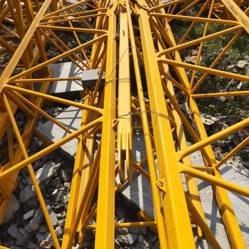 DAHAN 6013-6 used tower crane is being dismantled down, only did a site project, the performance is very excellent, the machine is very new.Yueyang machinery first time to take it down, do our stock machine, professional service to our customers to provide luffing tower crane first choice.