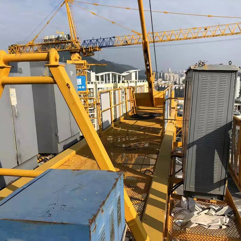 Stable and reliable: slewing, luffing, and lifting are all controlled by frequency conversion, which makes the tower crane run more smoothly. The electric control adopts PLC control, which improves reliability and safety.